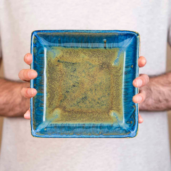 Blanket Creek Pottery - Medium Square Plate (Amber Blue)