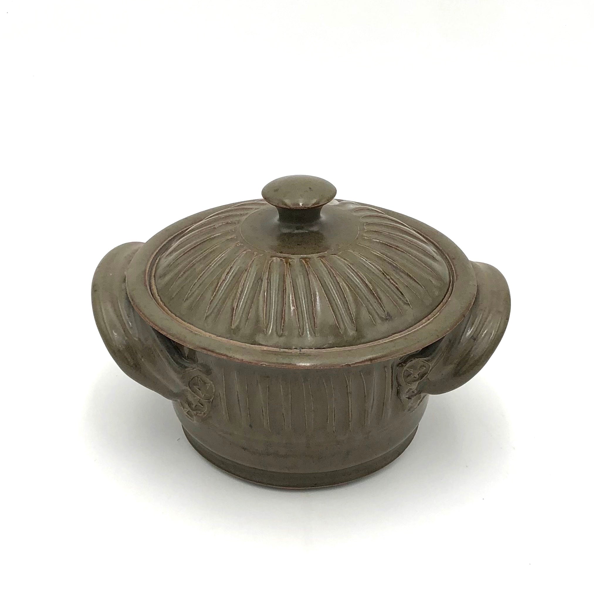 Coburn - Small Lidded Casserole #3 - Mini Pot with Handles (Fluted Green)