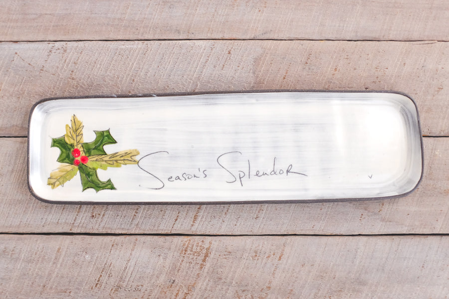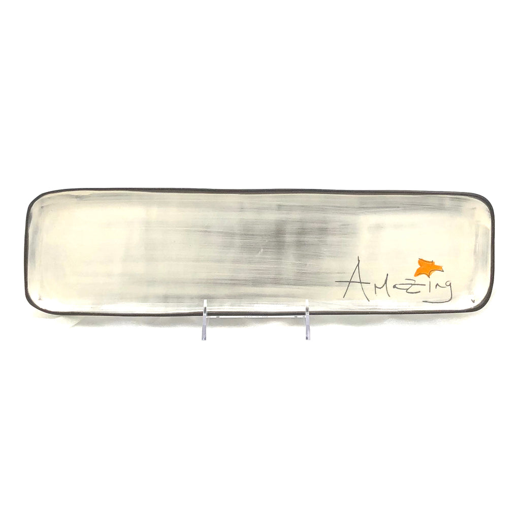 Bring some joy to any table with this long flat tray! Hand built and decorated with encouraging words and imagery. All ZPOTS are microwave, dishwasher, and oven safe.