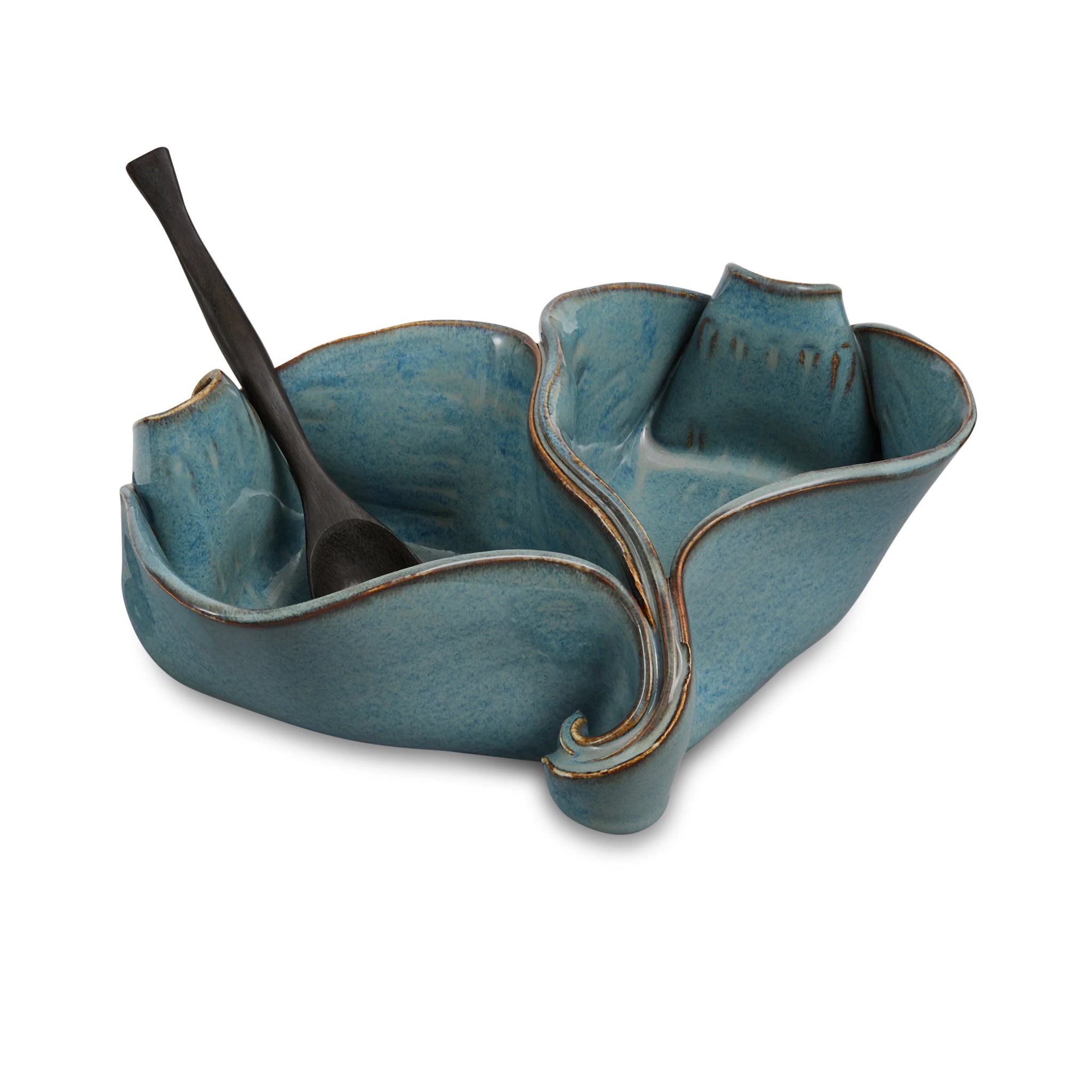 Fill up one side, then empty it to fill up the other side with empty shells from the full side. Are you half-full or half-empty? Comes with a rosewood spoon. All Hilborn pottery is oven, dishwasher and microwave safe.