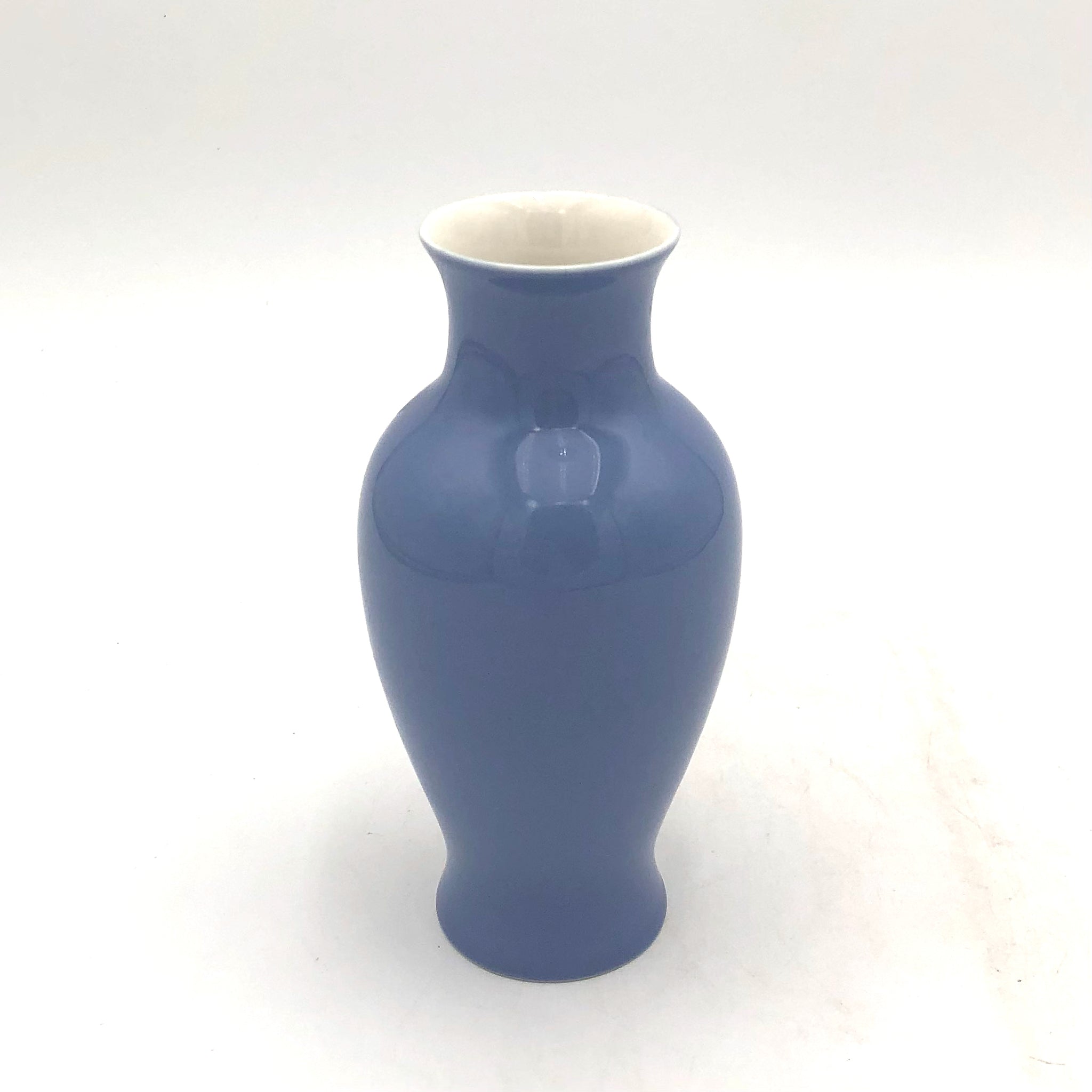 This pear-shaped porcelain vase features a soft lavender glaze. Dishwasher safe.