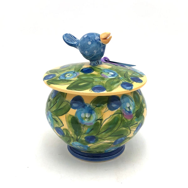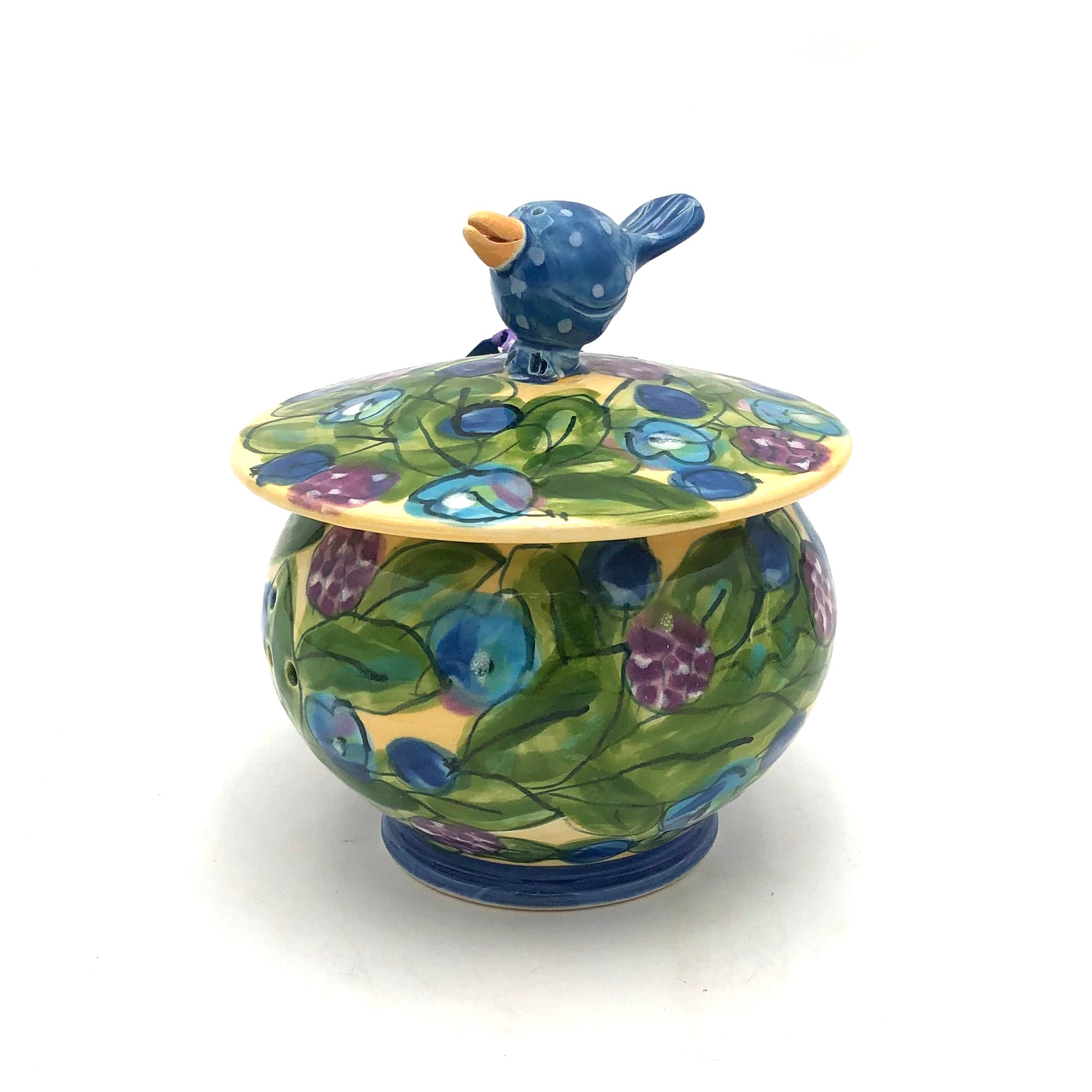 Note: The designs seen in the photos above may not be available. This piece comes in assorted fruits and bird colors on a bright yellow background. Once you place your order, one of our employees will reach out with current color options for you to choose from. Alternatively, you can give us a call at 785-843-0080 to help find the perfect piece for you.